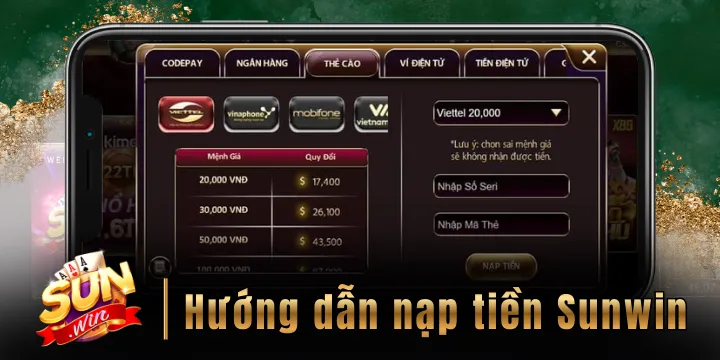 Nạp tiền Sunwin – Hướng dẫn nạp nhanh chóng và không tốn phí